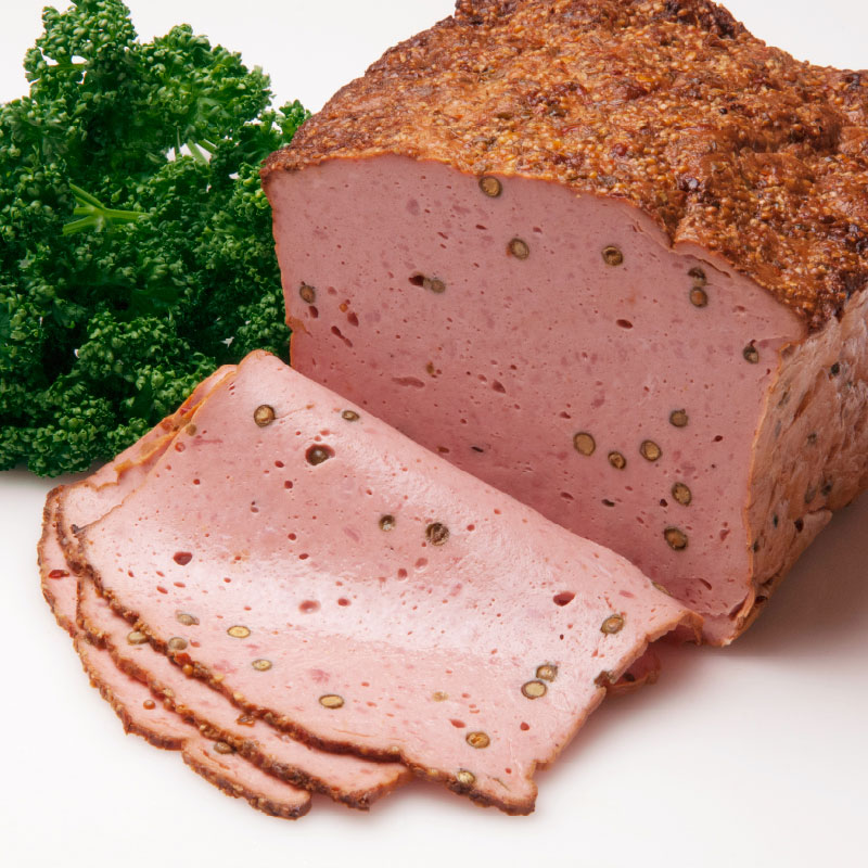 ソーセージ生地に細かく刻んだハムと爽やかな風味のグリーンペッパーを練り込み、表面に香り豊かなハーブを贅沢にあしらった、当店人気No.1の型焼きソーセージです。